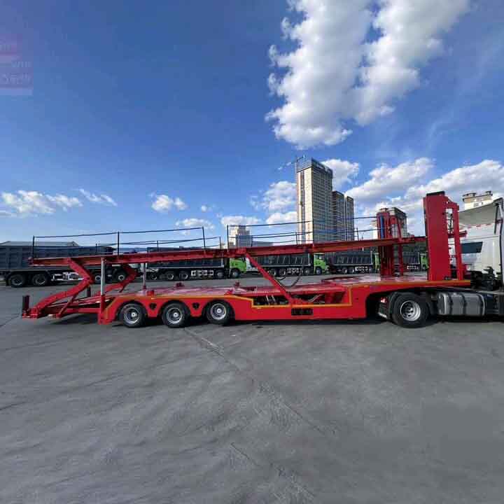 3 Axle 8 Car Carrier Container Load Semi Trailer er meget udbredt i bilproducenter, transnational billogistik og andre områder. Uanset om det er indenlandsk langdistancetransport eller international maritim intermodal transport, kan det spille fordelene ved høj effektivitet, sikkerhed og økonomi. Derudover er den også velegnet til transport af store maskiner og udstyr, avancerede møbler og andre varer, der har behov for særlig beskyttelse, og viser en bred vifte af anvendelighed og fleksibilitet.